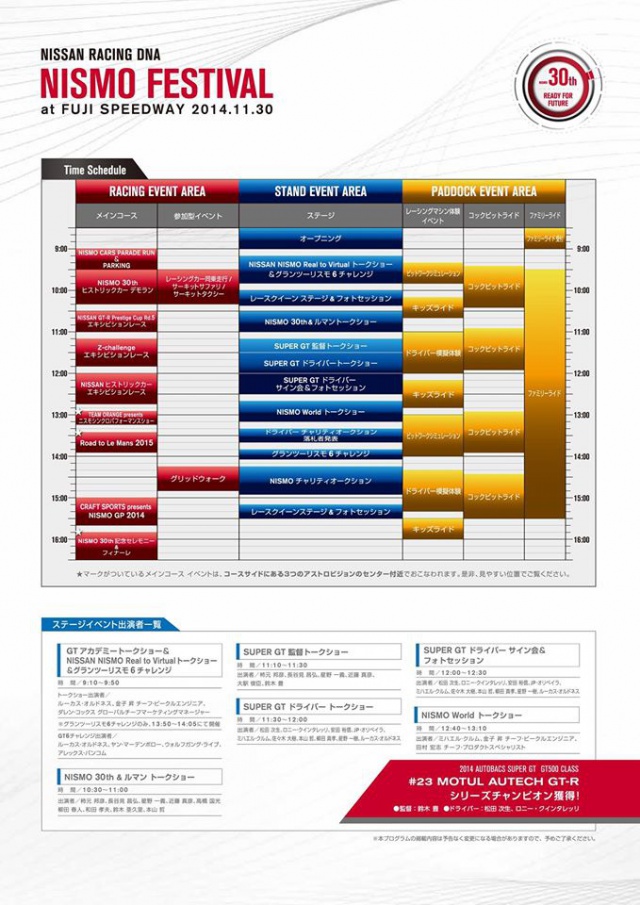 And This is my personal schedule at NISMO Festival.