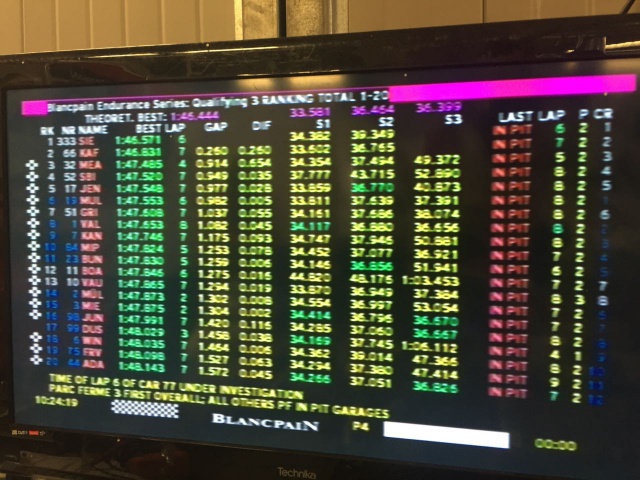 Q3のアタック中に赤旗が出たり、59台のGT3カーが一斉に走る中で、アレックスが頑張ってくれました。