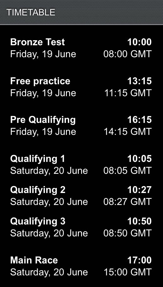 日本時間だと、このタイムスケジュール+7時間の時差になるので、決勝レースは土曜日の夜24時スタートです。