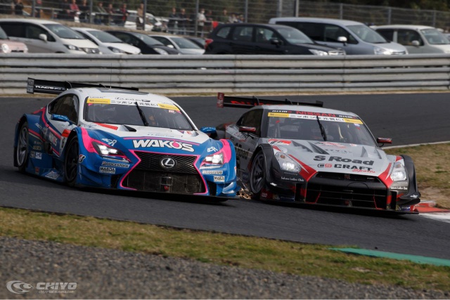 フリー走行終了後、2つのサポートレースとピットウォークをはさみ午後2時40分、決勝のフォーメーションラップが開始された。コース幅が狭くタイトなコーナーが多いことでスタート直後のバトルではアクシデントが起こる可能性の高い岡山だが、この日はクリーンなオープニングラップとなり、46号車のスタートドライバーをつとめる本山哲もしっかりと順位をキープ。反撃のタイミングを待った。レースはその後も中団では入れ替わりがあったものの、1〜4位は一定の距離を保ったまま順位は膠着状態となる。30周を過ぎたあたりからピットインがはじまり、46号車も36周目にピットイン。ここからGT500クラスレースデビューとなる千代勝正へとバトンが渡った。