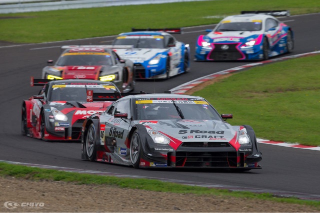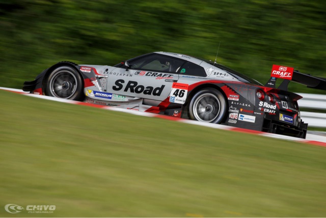 この日のSUGOは朝から霧雨が断続的に降り、時間帯によって路面はウェットとドライの変化を繰り返すことになった。朝の30分間のフリー走行はウェットセッションとなり、46号車「S-Road CRAFTSPORTS GT-R」はここでレインセッティングを確認。その後も霧雨は降ったり止んだりを繰り返したが、午後2時の決勝スタート時には雨も止み路面もドライに回復した。第4戦決勝はドライコンディションの下で行われた。