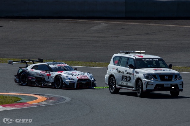 予選日の富士は朝から好天で絶好のコンディションに。午前9時05分より、先ずは公式練習が行われた。クルマのセットアップ、タイヤ評価、そして予選シミュレーションと、全てのメニューを消化しなければならないこのセッションはその後の展開に大きく影響する。だが、ここで3号車GT-Rに電気系トラブルが発生してしまう。この結果、セットアップが思うように進められず、午後からの予選に不安を残してセッションを終えることとなった。