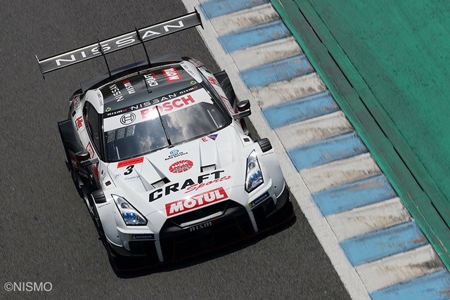 ツインリンクもてぎでの真夏のSUPER GT開催とレース距離300km、前戦から2ヵ月以上のインターバルは近年では実施していないイレギュラーな条件で、開幕2戦までの勢力図が変化する可能性は大いに考えられた。その可能性を最初に色濃くしたのが3号車CRAFTSPORTS MOTUL GT-Rだった。インターバルの2ヵ月の間に熟考した持ち込みセットアップの感触は走り出しから良く、練習走行ではクラストップタイムをマークした。