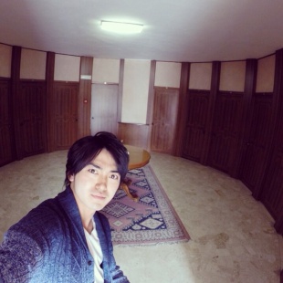 エレベーターで上がったら円形のフロアに一面扉がズラリ…