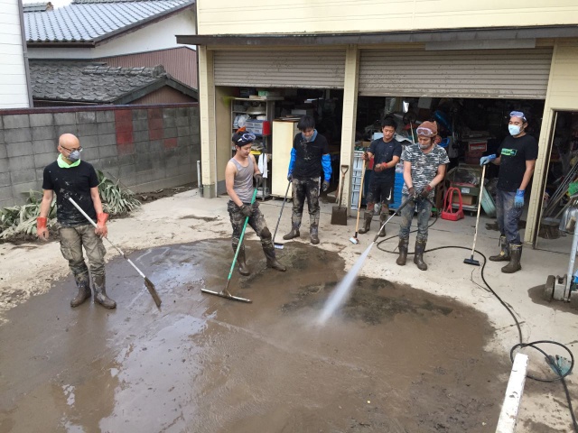 鬼怒川の堤防決壊で大きな被害を受けた石下町周辺の地区は、まだ電気が通っておらず、寸断された道路もあり、避難生活をされている住人の方がたくさんいました。また僕らがお手伝いさせて頂いたお宅では、玄関先が泥とヘドロで埋め尽くされていました。