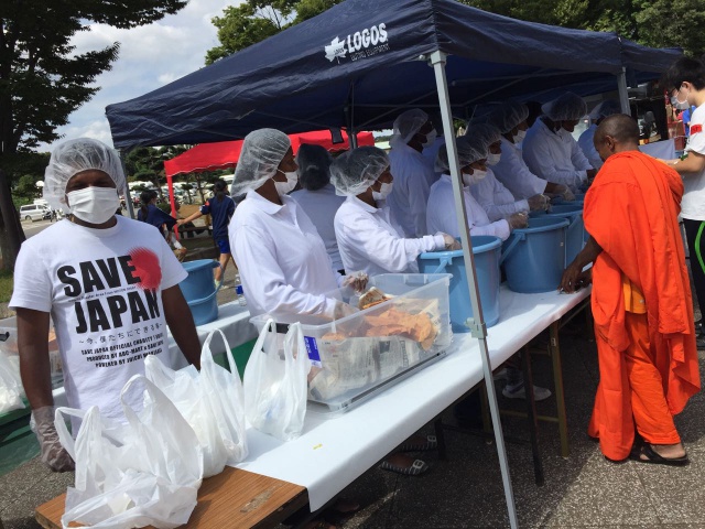 避難所で炊き出しをしていたスリランカ人の方が、SAVE JAPANのTシャツを着てくれていました!