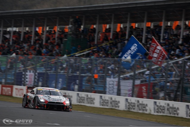 その膠着状態を突き破ったのが、千代だった。全マシンがピットインを終えると46号車の順位は第1スティントと同じ4位。だが、コースイン後の猛プッシュにより3位との差はかなり縮まっていた。千代はさらにプッシュし続けると43周目には3位と1秒以内に近づき、そこからすぐさまバトルへと持ち込む。初めてのGT500クラスのレース、狭いコース幅の岡山と、オーバーテイクが難しい条件は揃っていたが、52周目についに捉え3位に浮上する。46号車の反撃はさらにとどまるところを知らず、10秒以上の差があった2位に対してもその差をどんどん詰めていった。64周目には5秒差、70周目にはついに追いつきバトルに持ちこんだ。しかしその後、結局決定打は繰り出せず、そのまま82周を完走しチェッカー。目の前にあった2位を逃したことは確かに悔いが残るが、予選より順位を上げ3位表彰台で2016シーズンスタートを切ることができたのは46号車にとって幸先が良いといえるだろう。
