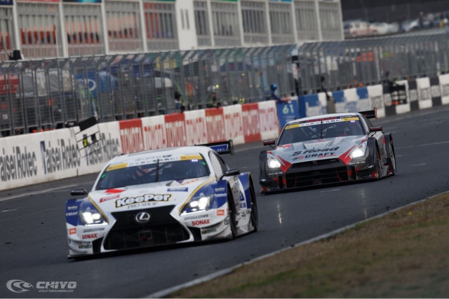 フリー走行終了後、2つのサポートレースとピットウォークをはさみ午後2時40分、決勝のフォーメーションラップが開始された。コース幅が狭くタイトなコーナーが多いことでスタート直後のバトルではアクシデントが起こる可能性の高い岡山だが、この日はクリーンなオープニングラップとなり、46号車のスタートドライバーをつとめる本山哲もしっかりと順位をキープ。反撃のタイミングを待った。レースはその後も中団では入れ替わりがあったものの、1〜4位は一定の距離を保ったまま順位は膠着状態となる。30周を過ぎたあたりからピットインがはじまり、46号車も36周目にピットイン。ここからGT500クラスレースデビューとなる千代勝正へとバトンが渡った。