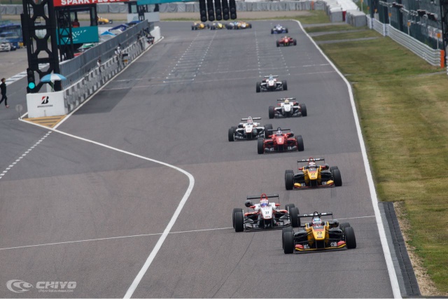 直前のスーパーフォーミュラ予選が赤旗により延長となったため、F3第1戦の決勝は予定より20分遅れのスケジュールで行われた。ドライコンディションにかわりはなかったが、予選時より雲が多くなり路面温度も低くなった。そして4番グリッドからこのレースに挑んだ千代は絶妙のスタートを決め一気に2位浮上を果たすと、さらに2周目にはホームストレートで接触が起こったためセーフティカーが導入となり、4周目にはトップとタイム差がない状態でリスタート。状況はさらに千代に有利となる。しかしその後、千代は思うようにペースを上げることができず、徐々に後退。レース後半は防戦一方の展開となったが粘り強く12周のレースを走り切り、スタート順位と同じ4位でフィニッシュした。