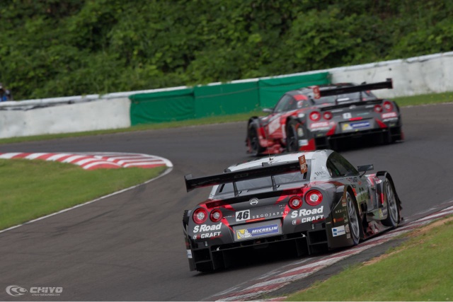 この日のSUGOは朝から霧雨が断続的に降り、時間帯によって路面はウェットとドライの変化を繰り返すことになった。朝の30分間のフリー走行はウェットセッションとなり、46号車「S-Road CRAFTSPORTS GT-R」はここでレインセッティングを確認。その後も霧雨は降ったり止んだりを繰り返したが、午後2時の決勝スタート時には雨も止み路面もドライに回復した。第4戦決勝はドライコンディションの下で行われた。