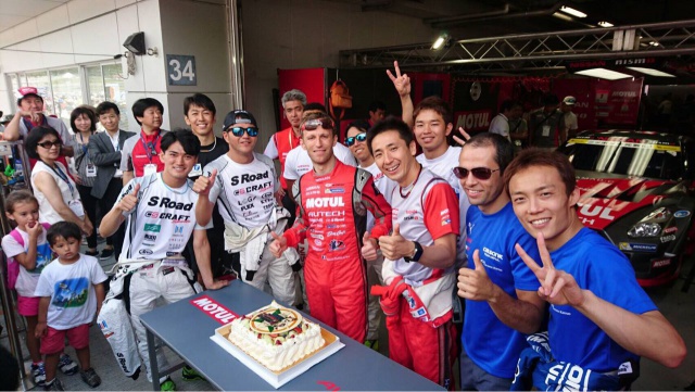 前日に続きこの日も富士は、夏本番の暑さとなった。この季節こそ高いパフォーマンスを発揮する46号車「S-Road CRAFTSPORTS GT-R」にとってはまさに、願ってもない展開。フロントローの一角からスタートする第5戦決勝は46号車にとって、今季初優勝が狙える最大のチャンスだといえた。朝9時から行われたフリー走行でも46号車はトップリザルトをマークと好調を維持し、午後の決勝のスタート時を待った。