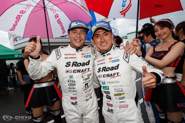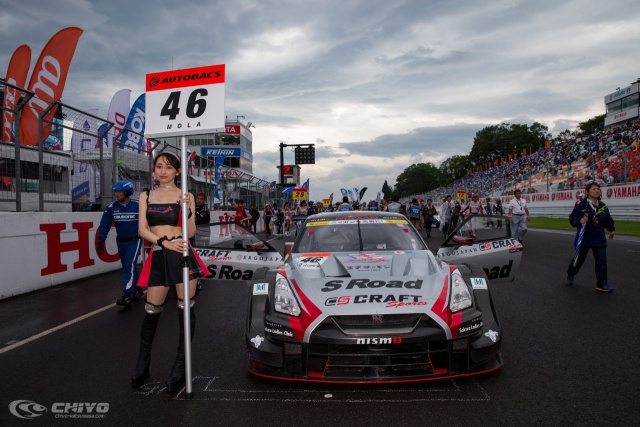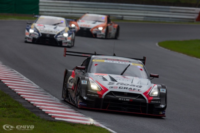 前日の夜からの雨が降ったりやんだりを繰り返す状況は決勝日でも続くことになった。午後になりウェットコンディションで行われたウォームアップ走行で46号車「S-Road CRAFTSPORTS GT-R」はトップタイムをマーク。決勝レースがウェットであれば大躍進の可能性も見えてきた。グリッドウォーク時は雨が止み、路面はかなり乾いてきていたが、レーススタート10分前になると再び雨が降り始める。気まぐれな天候の中、スリックタイヤに賭けるライバルもいたが、46号車はレインタイヤを選択した。千代がスタートドライバーを担当し、14時35分に決勝レースがスタート、300km先のゴールを目指す。