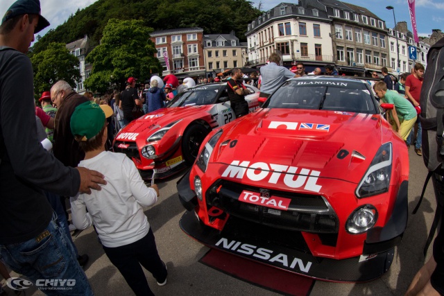 16:00 決勝スタート30分前。好天の中グリッドウォークが行われた。オールージュ手前ストレート上にル・マン式スタートの様に斜め前向きに全マシンが並べられ、グリッド上は多くのレース関係者・ファンで大混雑。ここベルギーでもGT-Rの人気は高い様だ。
