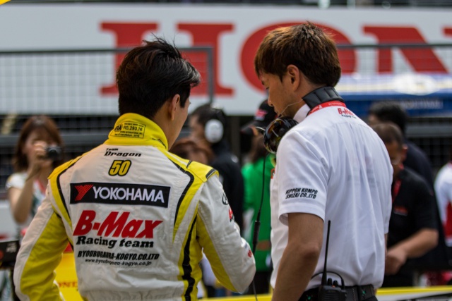 この日も鈴鹿は、前日同様の晴天に包まれた。午後になると路面温度は40°Cを超え、この時期としては想定外のコンディションとなる。各チーム、タイヤ戦略に一抹の不安を抱えながら午後1時50分、スーパーフォーミュラ今季開幕戦の決勝レースがスタートした。決勝レース2ではソフト、ミディアムの2種類のコンパウンドのタイヤを必ず一度使用しなければならないというルールが採用され、スタートポジションにより戦略は分かれることになった。概ね上位グリッドがミディアムでスタート、下位グリッドはソフトでスタートという傾向で、17番手スタートの千代もソフトタイヤでスタート。序盤での順位アップを狙う作戦に出た。