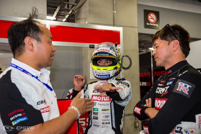 レースは長丁場らしい、静かな幕開けとなった。4番グリッドからスタートする3号車「CRAFTSPORTS MOTUL GT-R」の第1スティントを担当する千代 勝正はスタート後の1コーナーで順位をひとつ落とすも、落ち着いて立て直し、翌周には挽回。さらに3位浮上に向けペースアップと、順調な出だしを見せる。7周目にはGT300のトラフィックによってコースアウトし7位まで後退するが、ここも直ぐに持ち直し、11周目には6位に復帰。この先の長さを考えればペース的にもまだ、充分に上位進出の可能性はあるものと思われた。