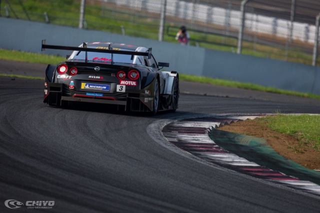 SUPER GT 2018シーズンは後半戦に入り、富士スピードウェイで第5戦を迎えた。夏休みの富士ラウンドはここ数年恒例となっているが、今回から距離が500マイル(807.651km)という、全く性格の異なるレースに変貌。真夏の耐久レースは昨年までの鈴鹿1000kmで各チーム経験積みだが、コースが違えばノウハウも異なってくるため未知のレースといえる。そんな中、富士に強いGT-R勢でウェイトハンデが比較的軽い3号車「CRAFTSPORTS MOTUL GT-R」は、優勝候補の一角に名を連ねる。その期待通り、午前中に行われた公式練習では千代勝正が2番手タイムをマーク。好調な滑り出しを見せた。