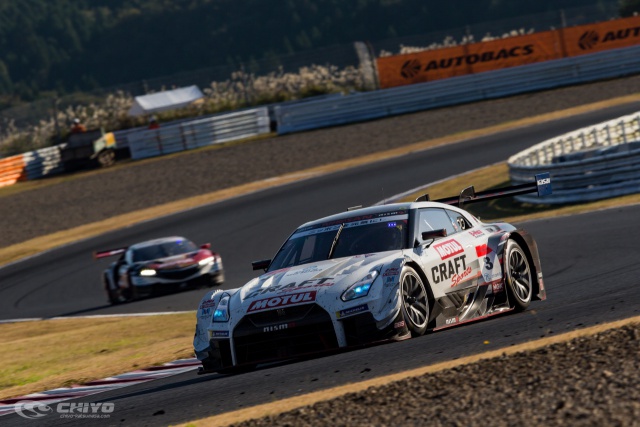 SUPER GT 2018シーズンは残り2戦。第7戦が九州のオートポリスで行われた。3号車「CRAFTSPORTS MOTUL GT-R」のここまでの戦績は最高位が開幕戦と第3戦の7位と、都度見せる速さに対し物足りなさは否めない。第7戦はウェイトハンデが軽減されランキング上位に対するアドバンテージは少なくなるが、それでも今季初表彰台の期待はやまない。ところが最初の公式セッションとなる午前中の公式練習はニッサン勢揃って不振に陥り、専有走行で千代 勝正がマークした1分34秒259のベストタイムは12位に留まった。厳しい週末のスタートとなった。