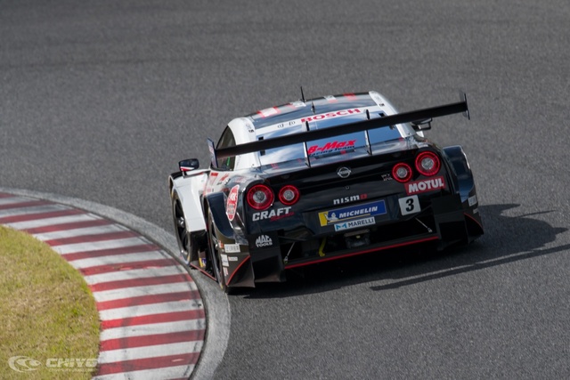 午前の公式練習では平手 晃平がイニシャルセットアップを確認した後、千代 勝正がロングランと専有走行を担当。路面コンディションが良くホームストレートが追い風だったことで全体的に予想よりもタイムが上がっていった中、3号車GT-Rのベストタイムは10位だったが、クルマのバランスにもタイヤのフィーリングにも2人のドライバーは好感触を持っていた。タイムが出なかった原因と分析も出来ており、この部分を改善させて午後の予選に挑んだ。