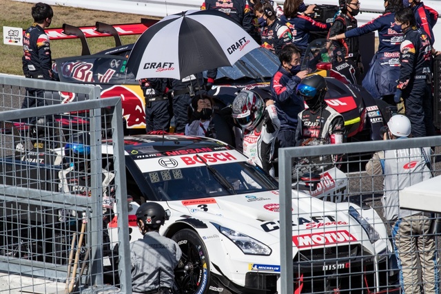 クルマのフィーリングはこの日も良好で、表彰台争いが可能な手ごたえをチームは持っていた。ところが、スタートのタイミングが合わず出遅れてしまい、7位に後退。その後も3号車GT-Rのペースは良かったものの、前のクルマのペースに付き合わされる恰好となり、トップが徐々に離れていく。コース上での打開が困難なこの状況にチームは20周目、早めのピットインを決断した。