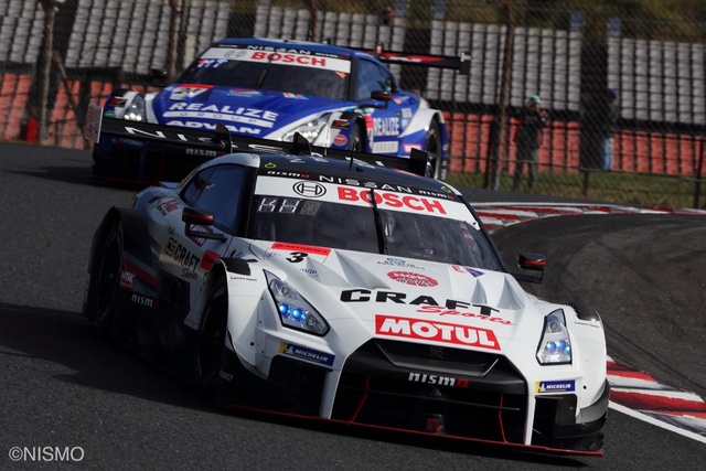 千代のスティント中に発生したパワーダウンの症状は度々表れており、不安を抱えながらチームは後半スティント担当の平手 晃平をコースに送り出した。だがここで平手がその不安を一掃する目の覚める様な走りを見せる。バトルでも強さを発揮し次々とオーバーテイクを決めると、47周目には10位までポジションアップ。勢いはその後も衰えず、6位に浮上してからのラスト5周のバトルはこのレース一番の見どころとなった。ファイナルラップの1コーナーで4位に浮上し、3位も目前に。表彰台には惜しくも届かなかったが、4位でフィニッシュした3号車GT-Rは再びランキングを上げ、タイトルの可能性を残して残り2戦に挑むことになった。