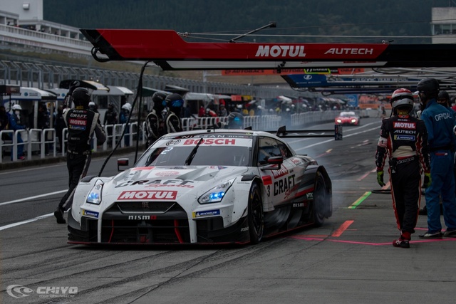 2日続けて好天となったオートポリスだが、気温は上がらず13℃、路面温度は19℃というコンディションで13時30分、第6戦決勝がスタートした。3号車「CRAFTSPORTS MOTUL GT-R」のスタートドライバーは千代 勝正。最後尾の15番手からスタートを切ったレースは前日の不振が嘘のような、ハイペースで前を追い続ける展開となった。