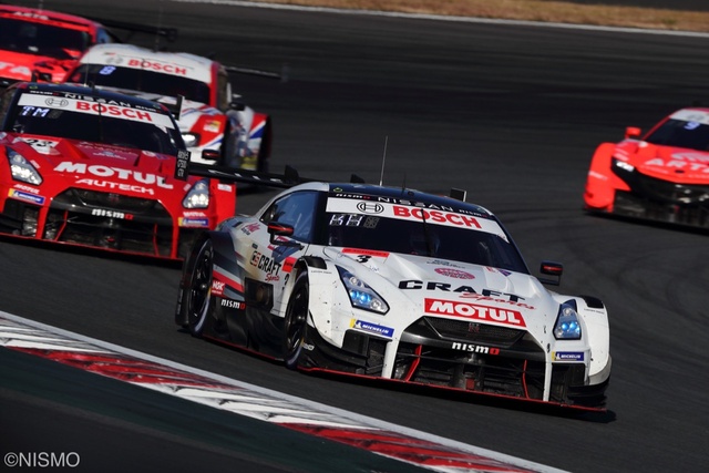 日曜日も富士スピードウェイは朝から快晴となり、絶好のコンディションで13時00分、決勝レースがスタート。8番グリッドの3号車「CRAFTSPORTS MOTUL GT-R」は千代 勝正がスタートドライバーをつとめた。